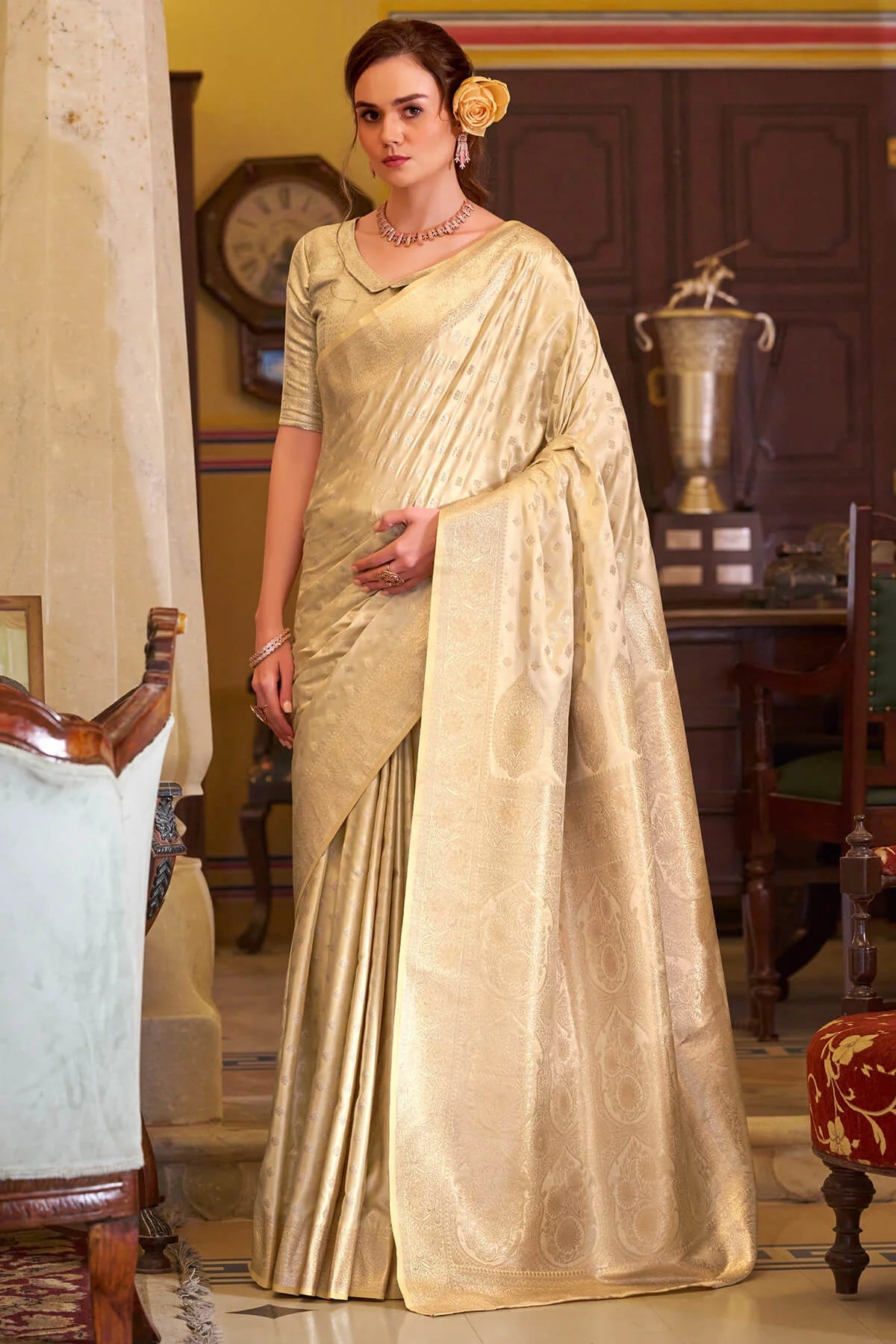 Embrace the regal beauty of the Banarasi Satin Silk Saree, a symbol of grace and refinement. Handcrafted with precision and finesse, this saree is a testament to the rich traditions of Indian craftsmanship. Make a statement at any event with this luxurious piece that blends tradition with modern elegance.