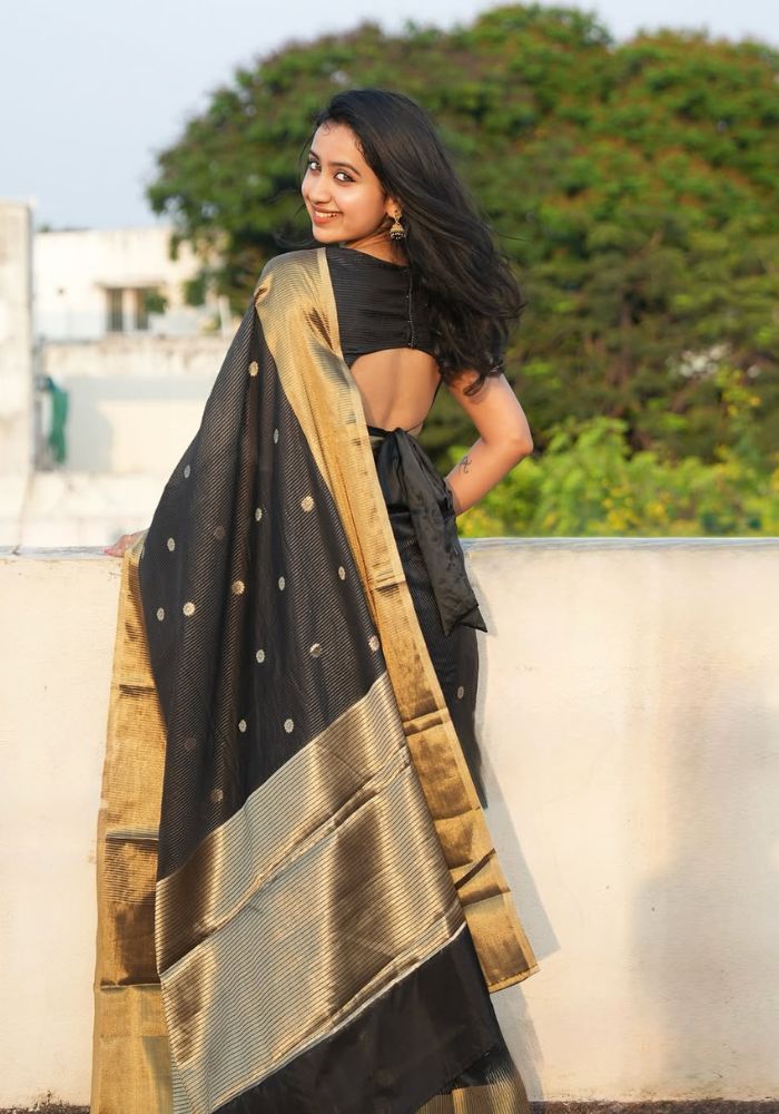 Get ready to turn heads with this stunning Sizzling Black Soft Silk Saree! Made with premium quality silk, this saree feels luxurious against your skin and drapes beautifully. The exquisite design and intricate details make it a perfect choice for special occasions or parties. The designer blouse piece adds an extra touch of elegance and completes the look. Stand out from the crowd in this gorgeous ensemble.