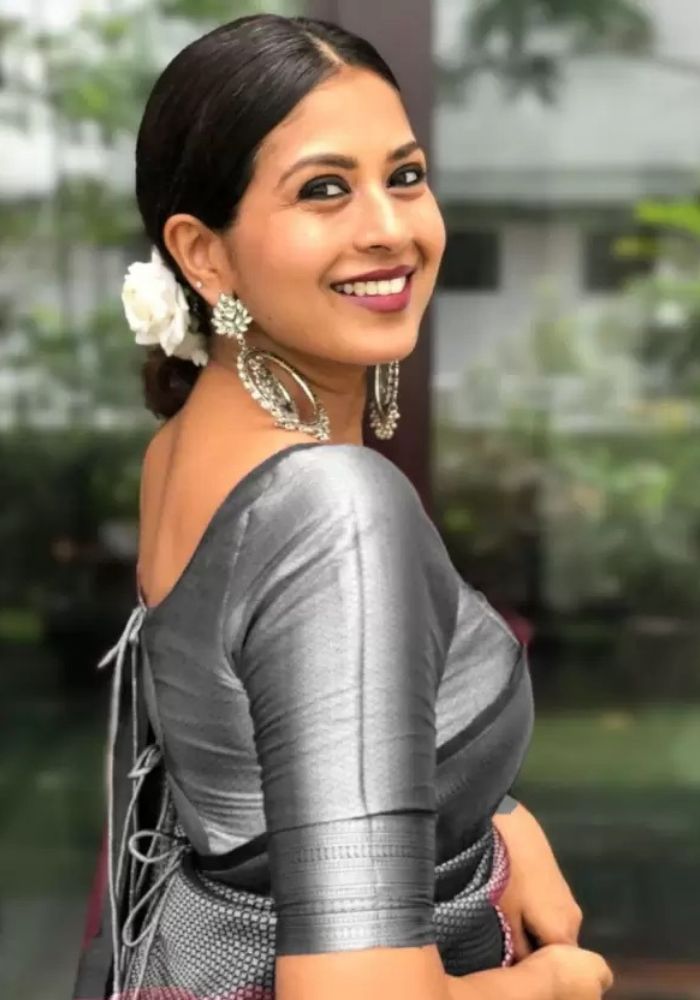Radiate timeless sophistication with this exquisite Silver Sheen Elegance saree. Crafted in a shimmering silver-gray tone, the saree features a subtle yet intricate textured weave that adds depth and richness to its overall look. The sleek black border enhances its modern appeal, making it perfect for festive occasions, cocktail parties, or elegant evening events. Paired with a matching silver blouse and styled with statement chandbali earrings and a floral hair bun, this look effortlessly merges tradition with contemporary glam.
